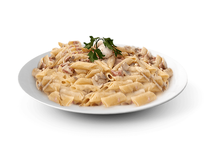 Crème fraîche, lardons, oeuf Servies avec parmesan.